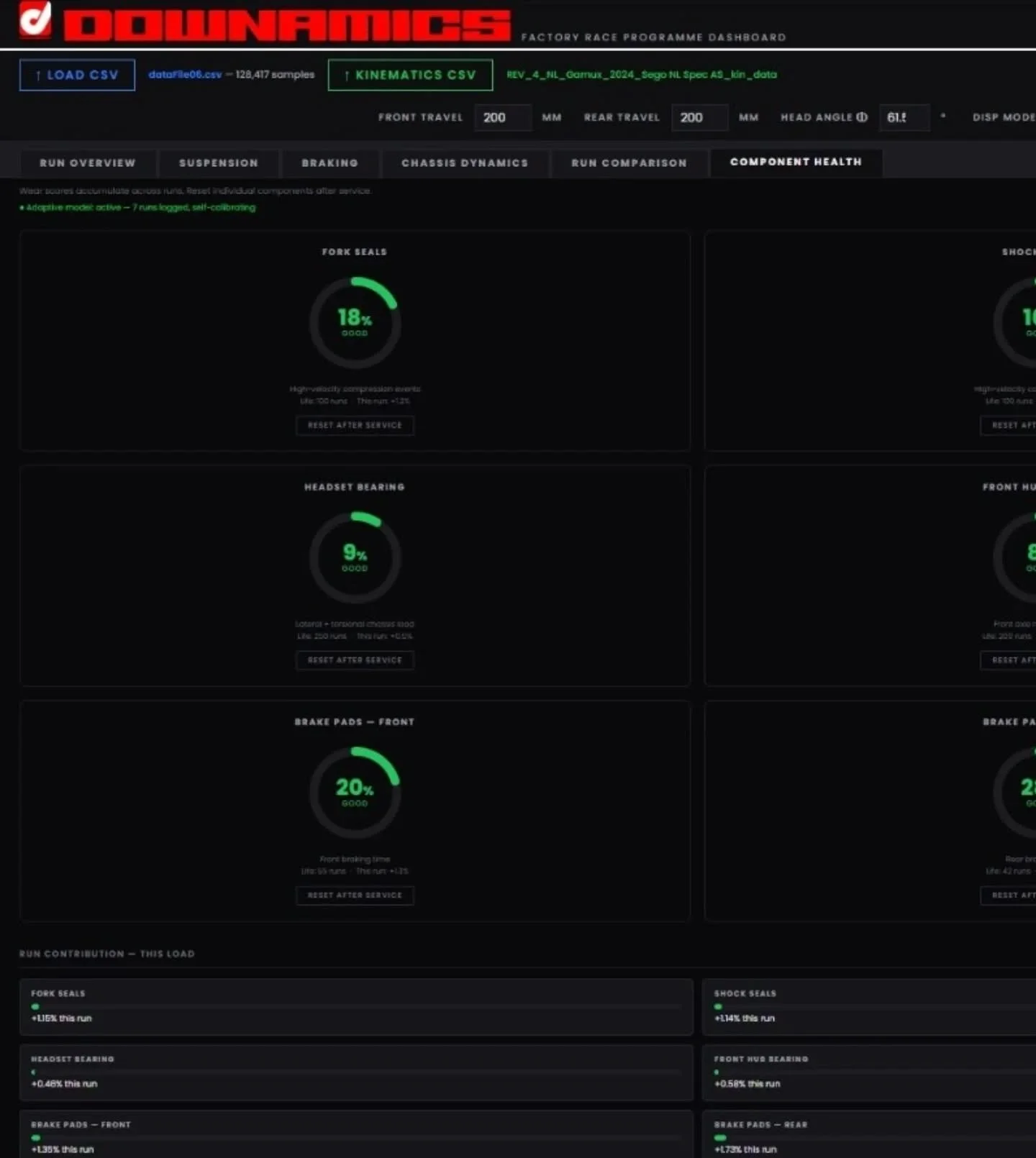 From suspension kinematics to braking behaviour, from frequency analysis to wheel dynamics, this book shows how to turn raw data into real performance gains. Drawing on years of practical testing with modern DAQ systems at the highest level of racing, Nick Lester breaks down the science behind what your bike is really doing on the trail — and how to optimise it. With clear explanations, real-world examples, and powerful analysis tools, this book bridges the gap between intuition and engineering, giving you the framework to understand, diagnose, and improve every aspect of The System.
